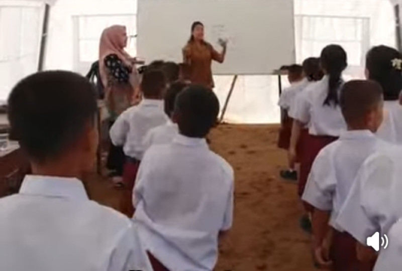 Sebagian dari 161 siswa SD Hutanabolon 2 mengikuti proses belajar mengajar di SD Hutanabolon 1. Untuk sebagian lainnya, mengikuti proses belajar mengajar di tenda sekolah darurat.