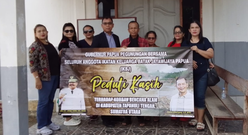 TAPTENG.WAHANANEWS.CO - SIBOLGA – Ikatan Keluarga Batak Jayawijaya (IKBJ) Papua Pegunungan, bersama dengan Gubernur Papua Pegunungan DR.HC. Jhon Tabo, SE, MBA, menunjukkan kepedulian terhadap masyarakat terdampak bencana longsor dan banjir di Sibolga dan Tapanuli Tengah dengan menyalurkan bantuan uang tunai total Rp130 juta pada Senin (9/2/2026) pagi.