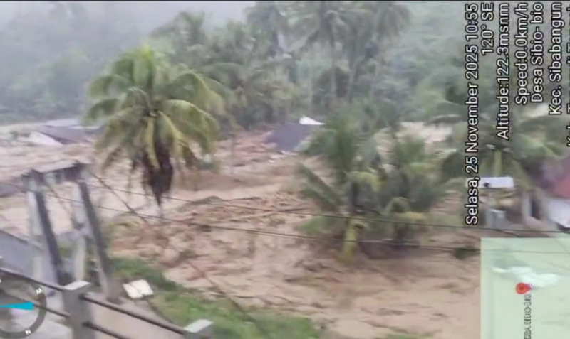 Salah satu video yang diunggah Kepala Desa Sibiobio, Kecamatan Sibabangun, memperlihatkan luapan Sungai Sosopan yang menghanyutkan ribuan kubik kayu, memporak-porandakan desa yang berbatasan dengan Kabupaten Tapanuli Selatan itu.
