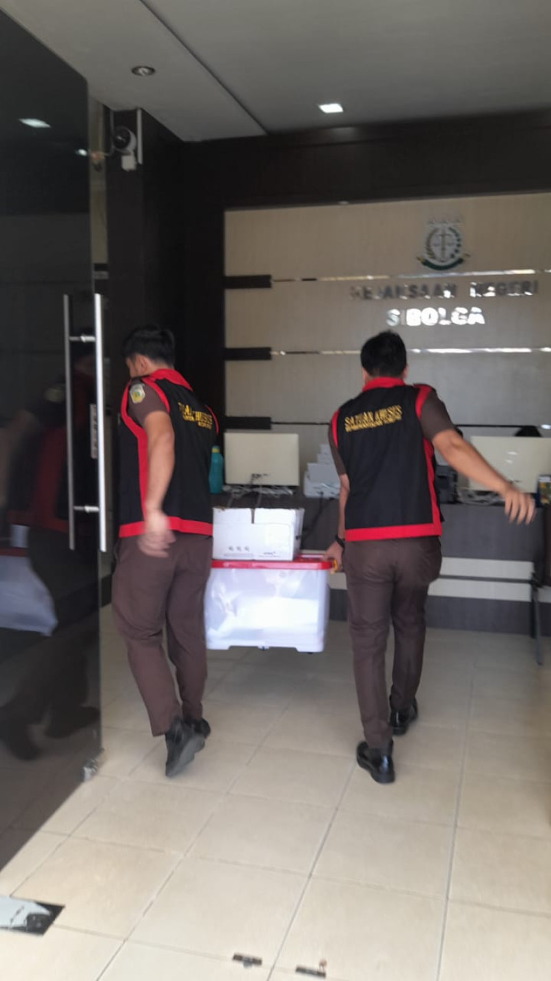 Tim penyidik Tindak Pidana Khusus Kejari Sibolga terlihat melakukan penggeledahan sejak pukul 10.30 WIB hingga pukul 12.00 WIB.