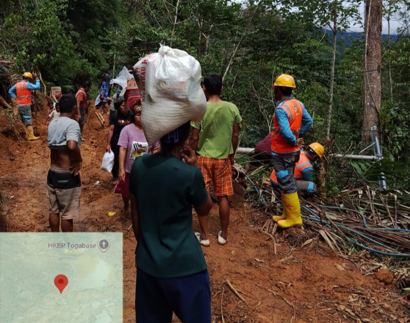 Meskipun listrik belum pulih di Togabasir, bantuan logistik dan sembako sudah tiba untuk ratusan Kepala Keluarga yang terisolir.