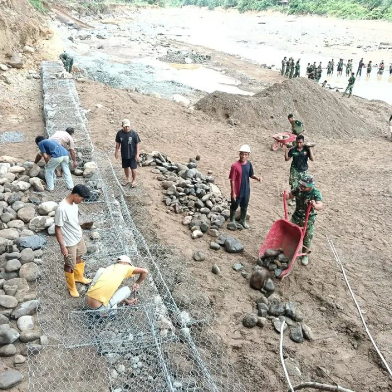 TAPTENG.WAHANANEWS.CO - BADIRI - Satgas Penanggulangan Bencana Alam (Gulbencal) Kodim 0211/Tapanuli Tengah telah menyelesaikan seluruh rangkaian pekerjaan perbaikan jalan yang terdampak longsor dan pemasangan pondasi ronjong sepanjang 20 meter dengan tinggi 10 meter di Desa Ampolu, Kecamatan Badiri, Kabupaten Tapanuli Tengah, Sumatera Utara.